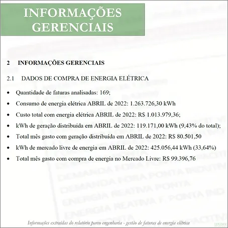 A gestão de faturas de energias é um serviço de apoio a empresas com unidades distribuídas em diferentes localidades. Esta gestão organiza a contabilidade, os pagamentos das faturas e identifica oportunidades de eliminação de desperdícios com pagamento de multas por atraso, ajuste de demanda e correção de fator de potência.